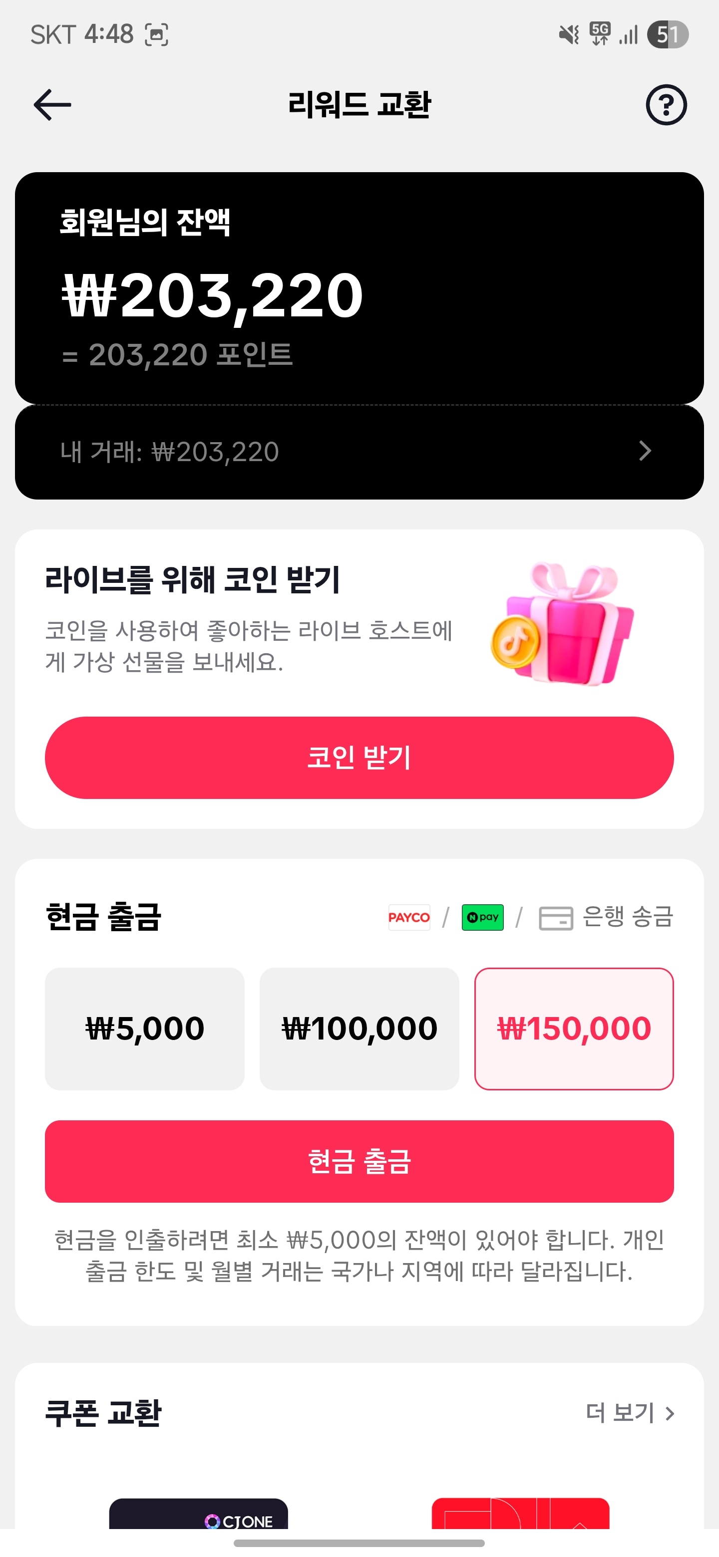 네이버페이로 출금이 가능하고, 1일 최대 출금이 15만원이라 나눠서 출금하시면 됩니다!